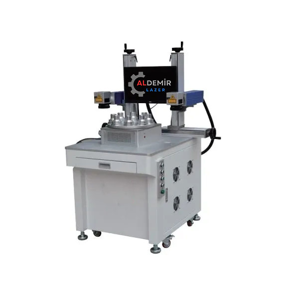 Sekiz istasyonlu çift kafalı lazer markalama makinesi, fiber lazer teknolojisini kullanarak LED ampulleri markalamak veya kazımak için tasarlanmış özel bir endüstriyel ekipman parçasıdır. Bu makine, markalama sürecinde verimliliği ve üretkenliği artırmak için çift markalama kafasını ve sekiz istasyonu birleştirir.