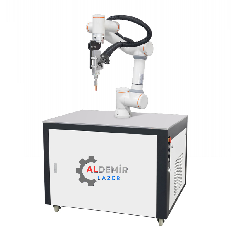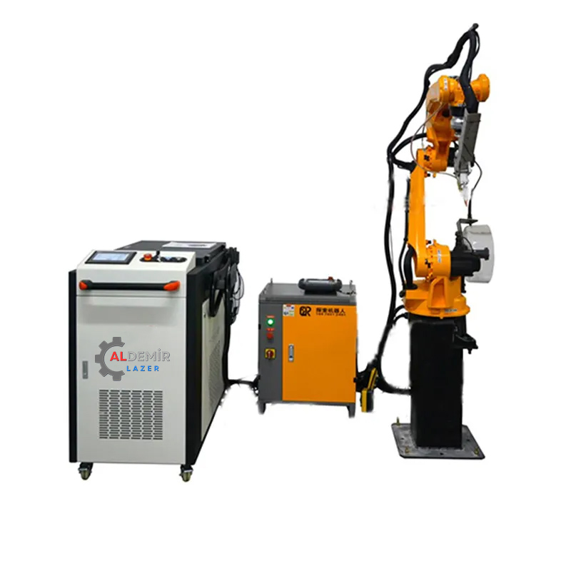 ALDEMİR LAZER otomatik robotik lazer kaynak makinesi fiber lazer, robot kontrol sistemi, konumlandırma sensörü, lazer kaynak kafası ve soğutma sisteminden oluşur. 6 eksenli robot kolunun mükemmel kaynak hızlarına, estetik görünümüne ve esnek hareket kabiliyetine sahiptir.